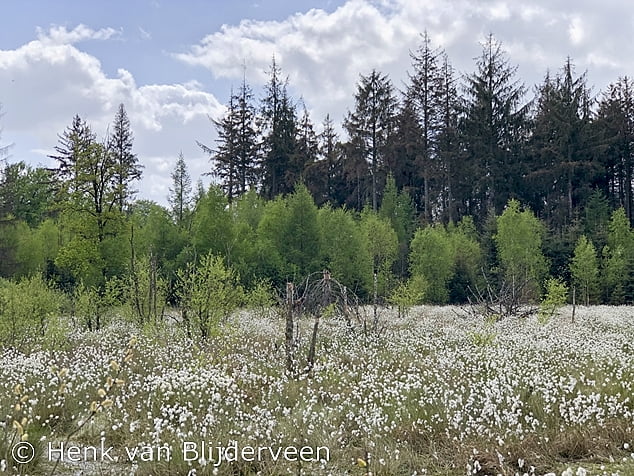 Het zuurminnende wollegras laat zien dat we hier te maken hebben met veengrond.